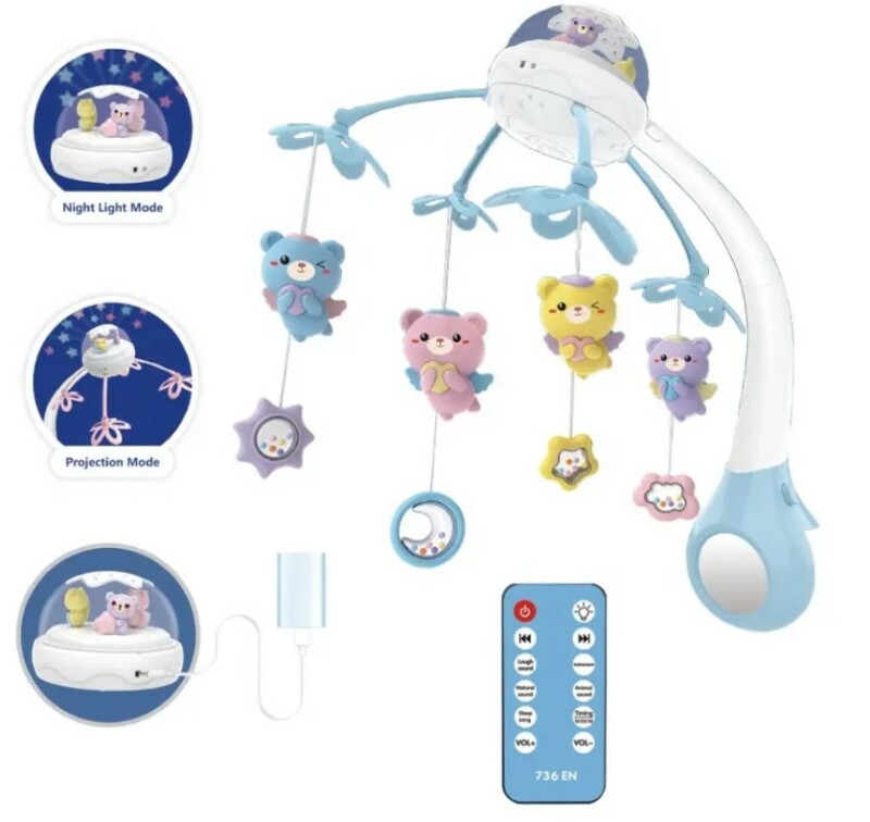 Неймовірний нічник в одну мить перетворить кімнату на зоряне небо. Малюнки зоряного піднебіння позитивно впливають на емоційний стан дитини. Підвісні іграшки повільно повертаються по колу під приємні мелодії, створюючи затишну атмосферу в кімнаті малюка. Рухливі фігурки та музика навчать дитину зосереджуватися на звуках та предметах. М'яке підсвічування створить казкову атмосферу для комфортного сну дитини.