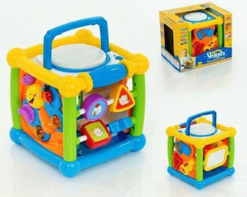- кнопка-барабан у верхній частині куба блимає і звучить при натисканні - веселі кульки та брязкальця;