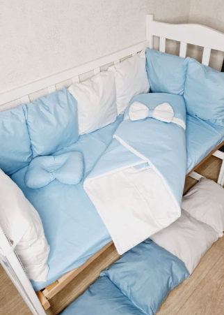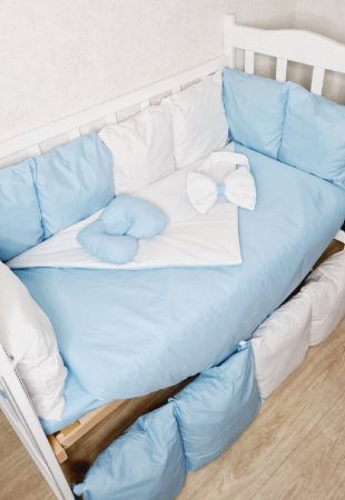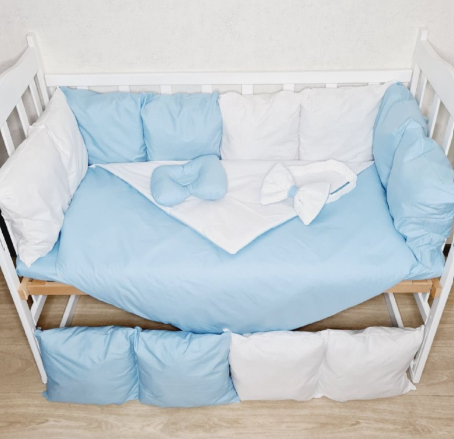 Juno, інтернет-магазин дитячих товарів\\Комплект постільної білизни Bonna Eco в дитяче ліжечко Блакитний Однотон