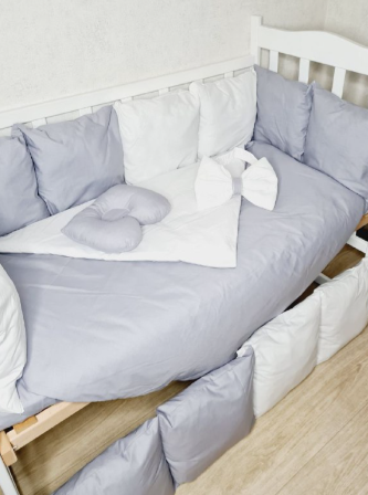 Juno, інтернет-магазин дитячих товарів\\Комплект постільної білизни Bonna Eco в дитяче ліжечко Сірий Однотон