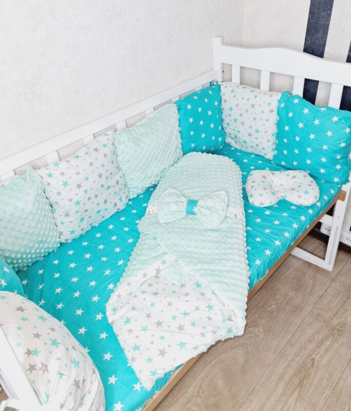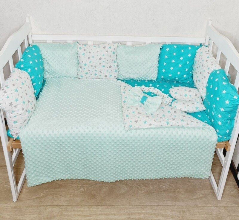 Juno, інтернет-магазин дитячих товарів\\Комплект постільної білизни Bonna Mineco в дитяче ліжечко М'ятний