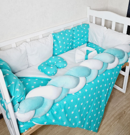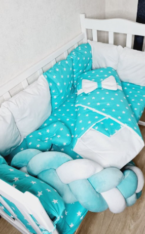 Juno, інтернет-магазин дитячих товарів\\Комплект постільної білизни Bonna Elegance у дитяче ліжечко Зірки М'ятно-білий