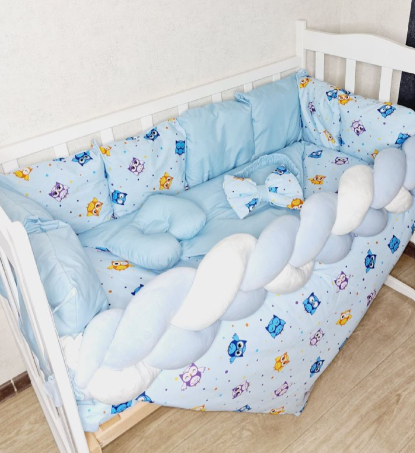 Juno, інтернет-магазин дитячих товарів\\Комплект постільної білизни Bonna Elegance в дитяче ліжечко Сови Блакитний