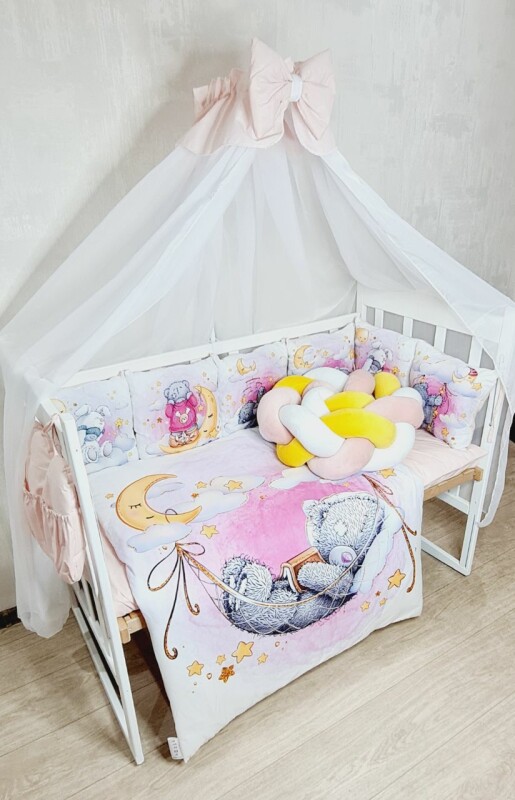 Комплект постільної білизни Bonna Premium в дитяче ліжечко Тедді Рожевий