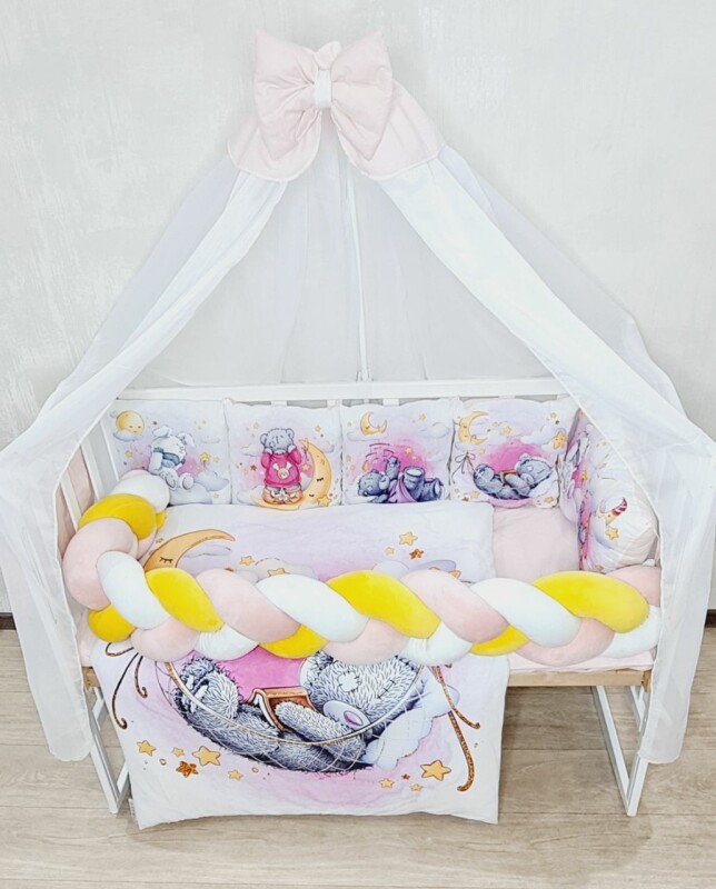 захист знімний (6 подушечки 30х30см, коса 180см на 2 сторони ліжечка)