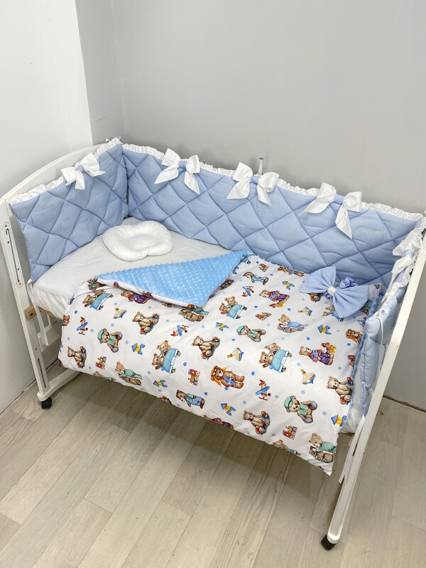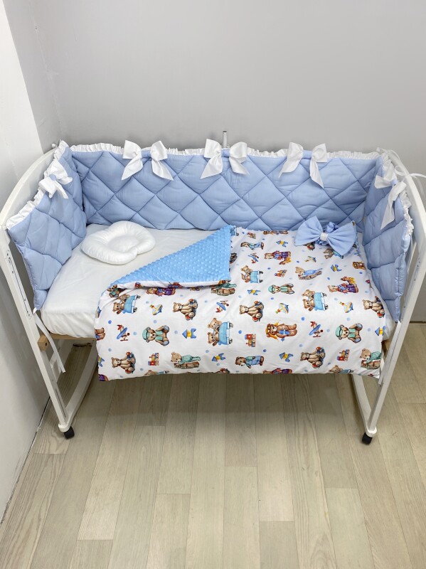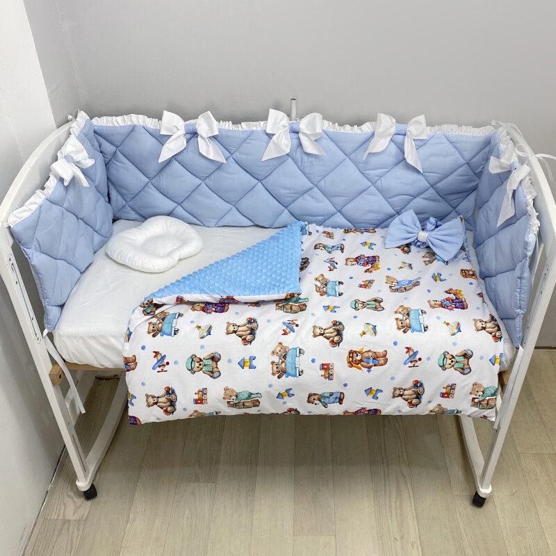 Комплект постільної білизни, в дитяче ліжечко. Блакитний, з ведмедиками.