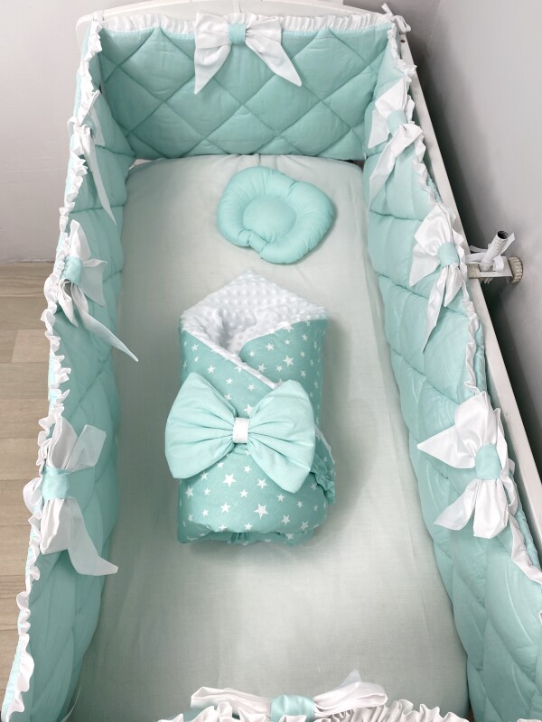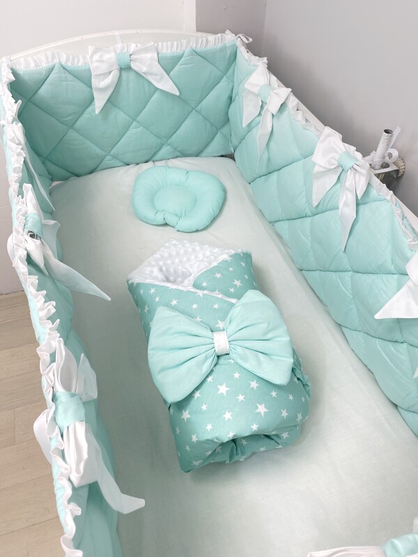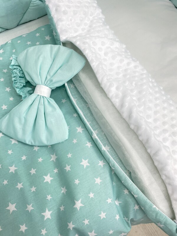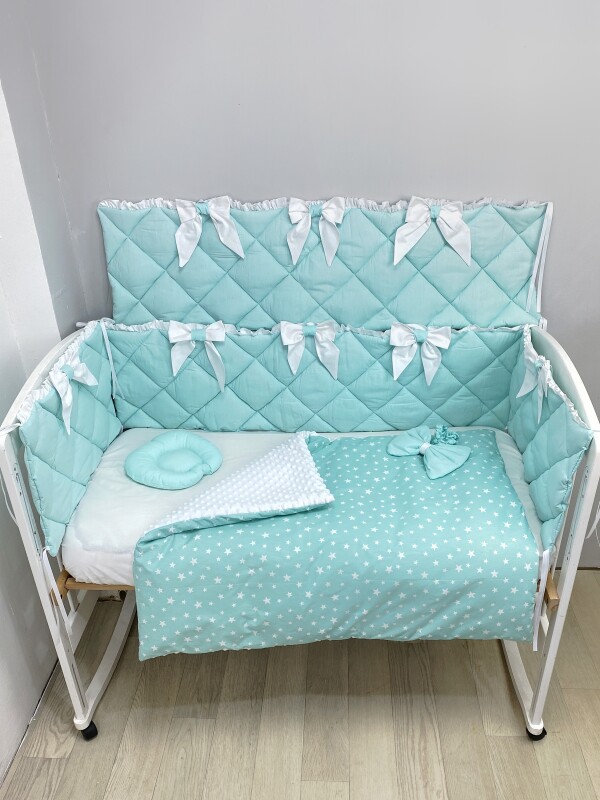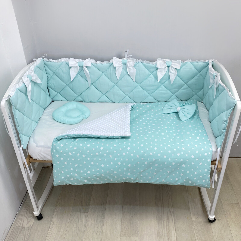 Комплект постільної білизни, в дитяче ліжечко. М'ятний, у зірочку.