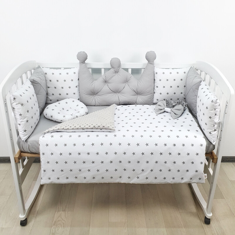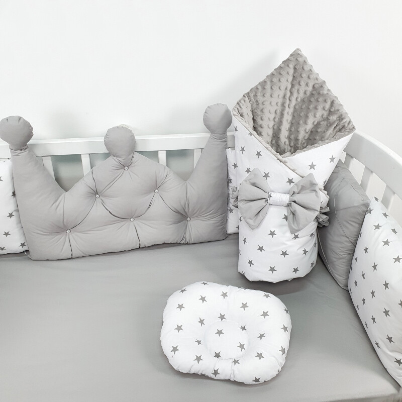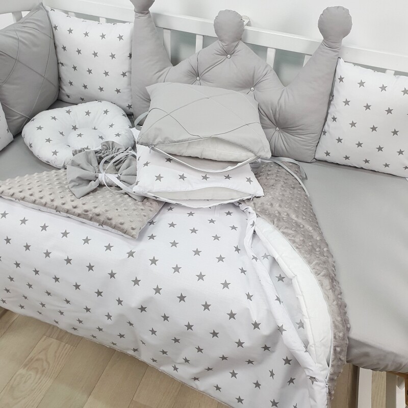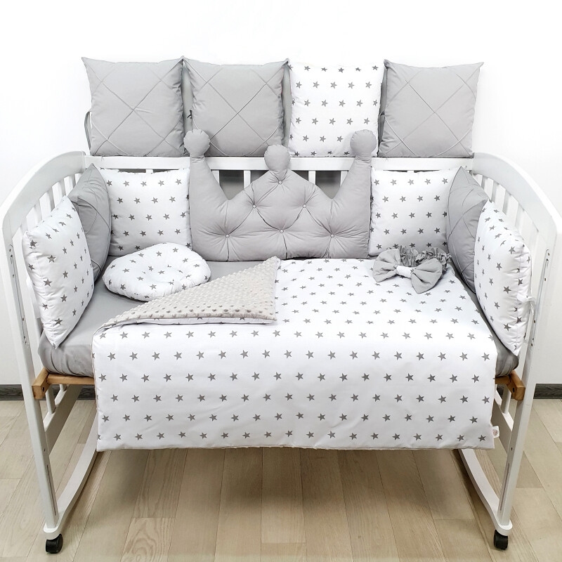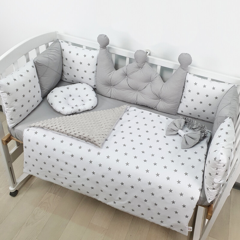 Juno, інтернет-магазин дитячих товарів\\Комплект постільної білизни, в дитяче ліжечко Корона сіра