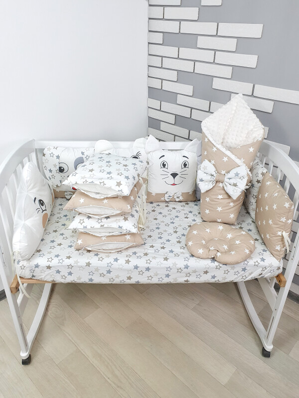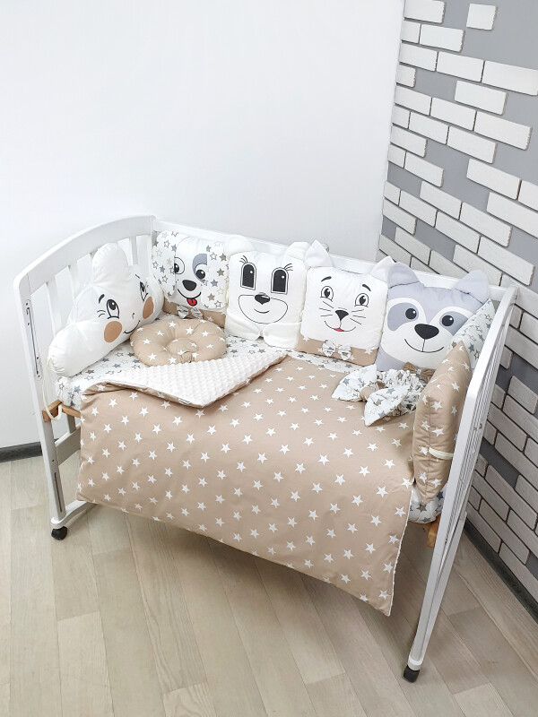 Комплект постільної билизни, в дитяче ліжечко. Бежеві іграшки в зірочки з хмаринкою