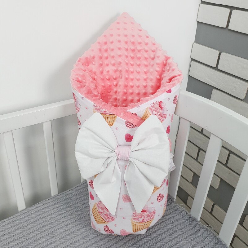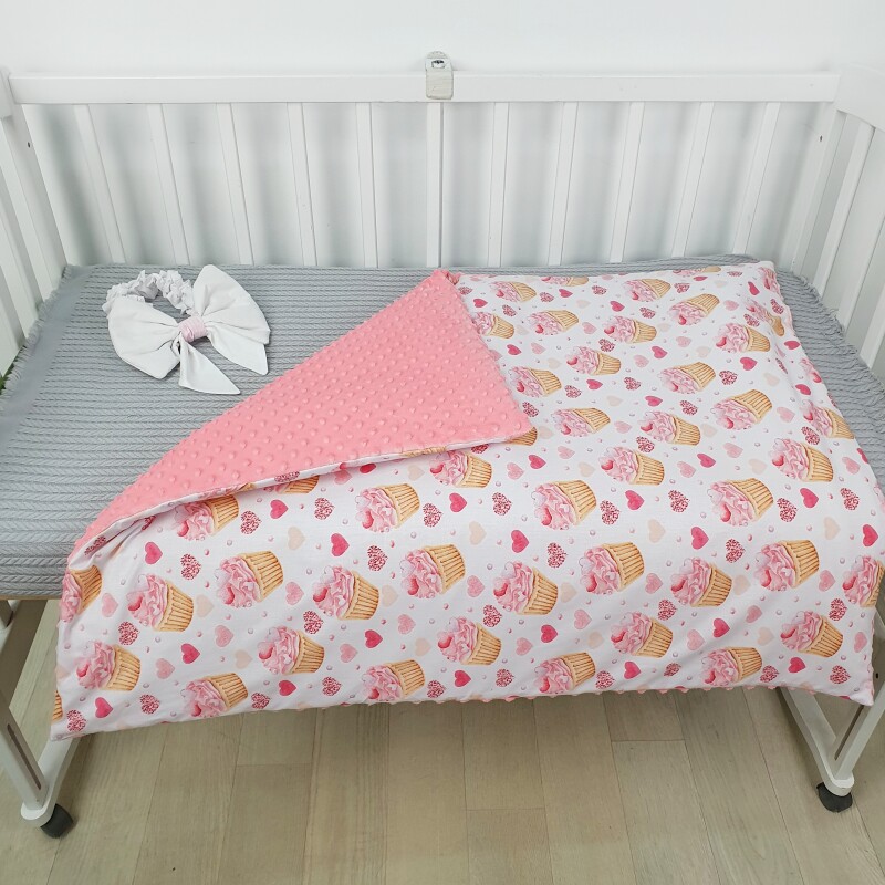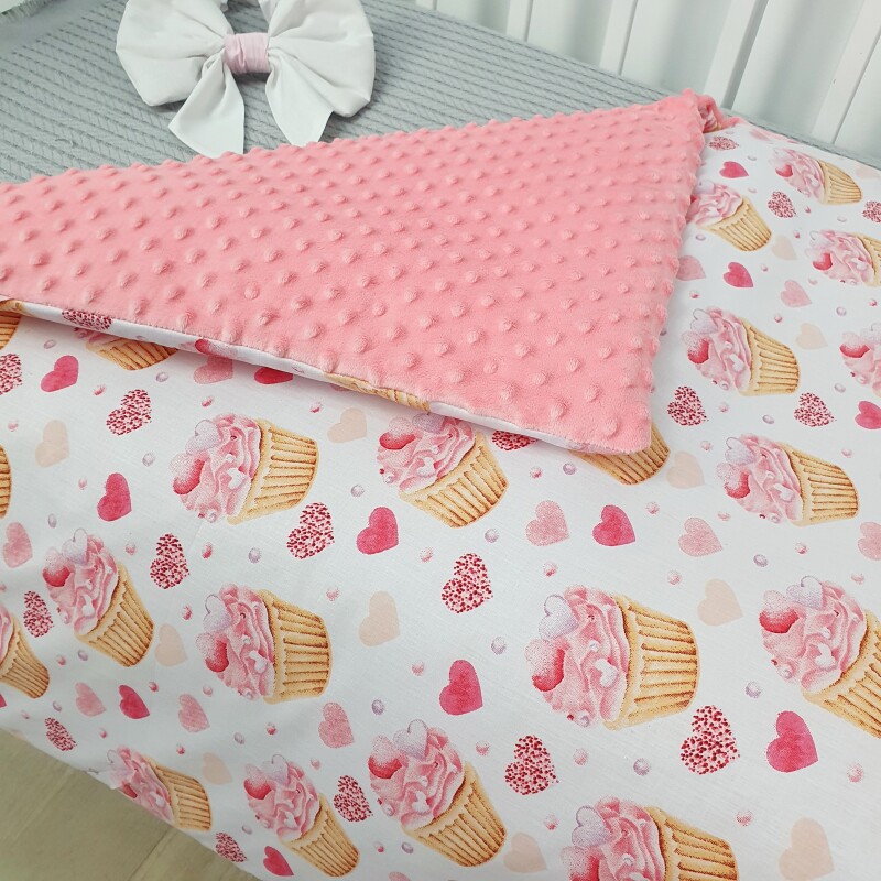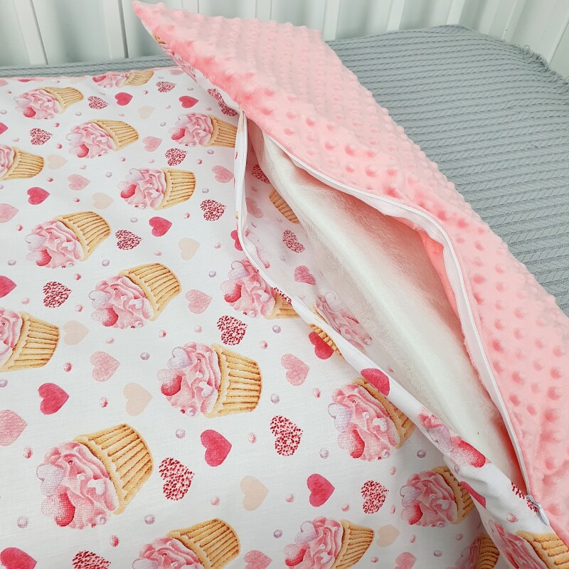 Juno, інтернет-магазин дитячих товарів\\Ковдра-Конверт Тістечка рожеві з кораловим плюшем