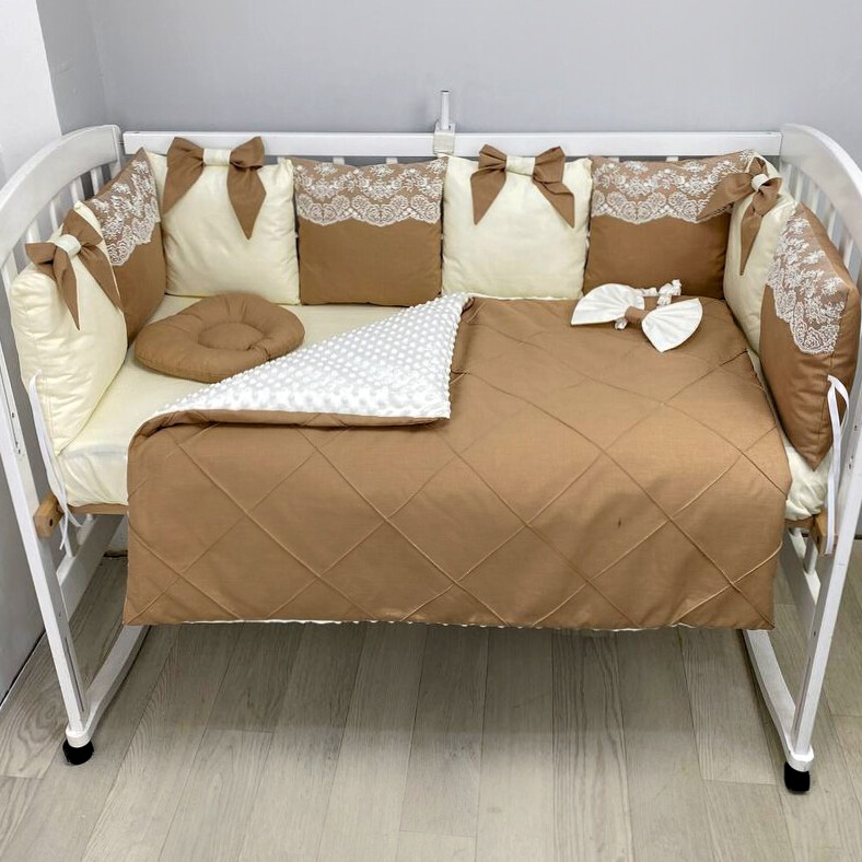 Наші набори з мереживом - це витонченість та комфорт у кожній деталі. Завдяки неперевершеному дизайну та високоякісним матеріалам, ці набори додадуть шарму та затишку в кожен куточок дитячої кімнати. Розкішна комплектація включає: