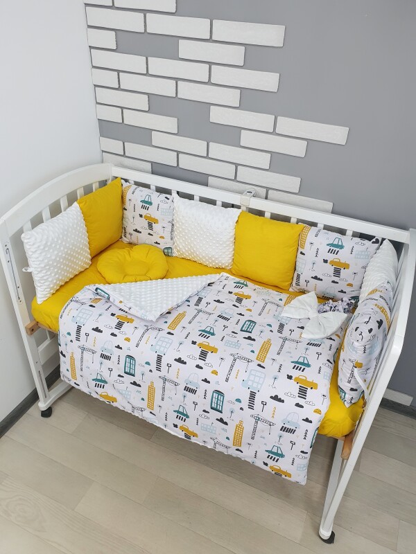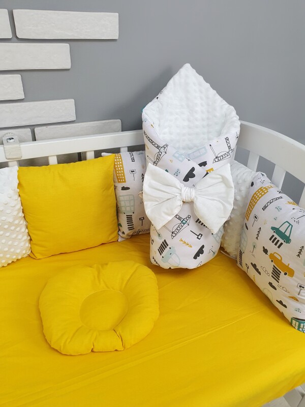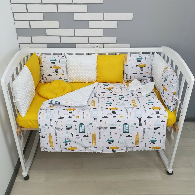Комплект постільної білизни, в дитяче ліжечко. Жовті машинки
