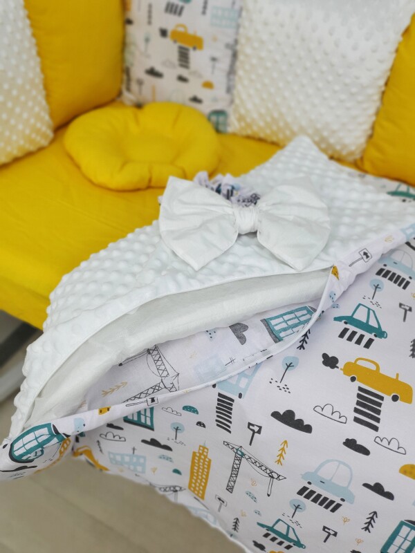 Juno, інтернет-магазин дитячих товарів\\Комплект постільної білизни, в дитяче ліжечко. Жовті машинки