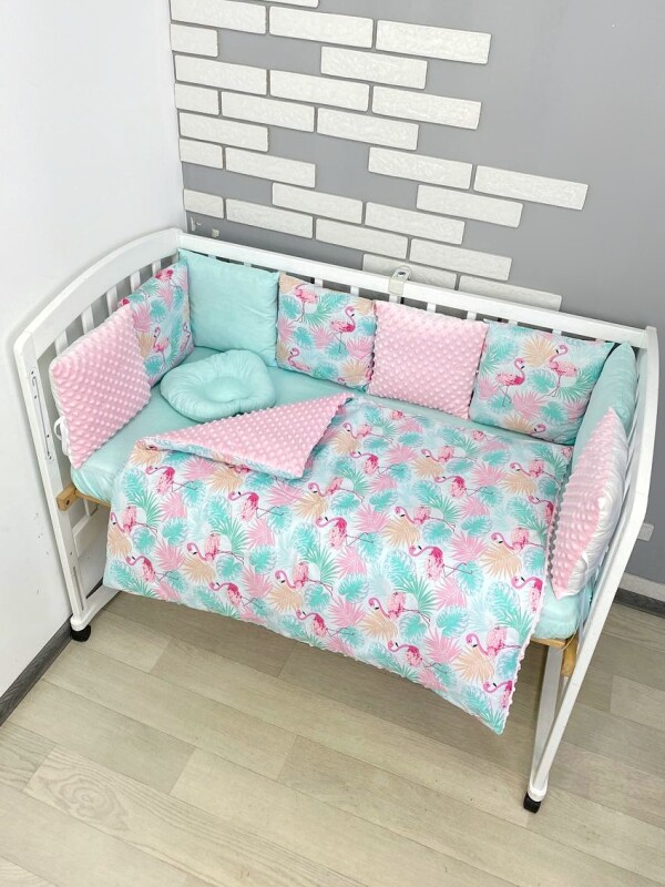 Комплект постільної білизни, в дитяче ліжечко. Фламінго м'ятно-рожеві