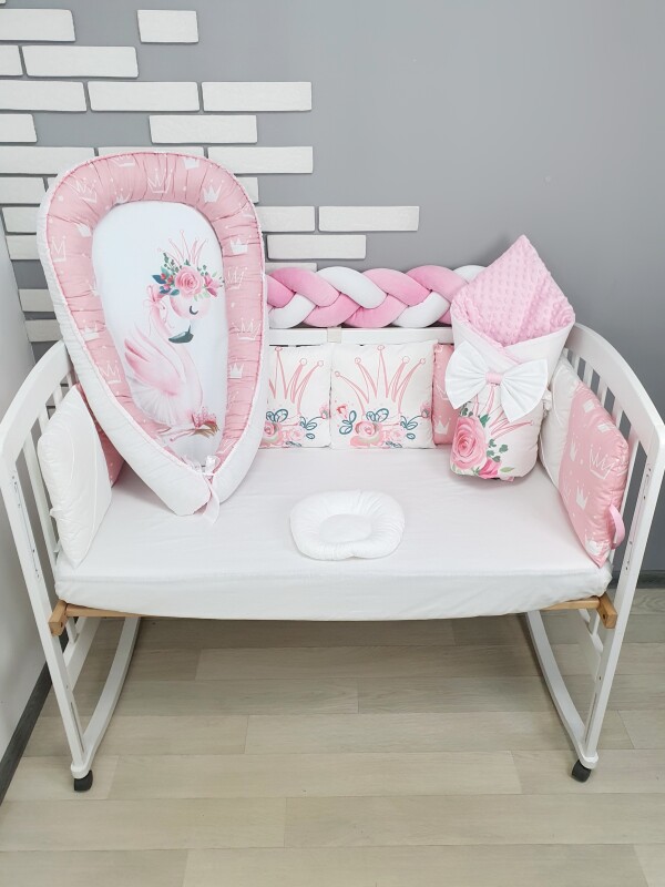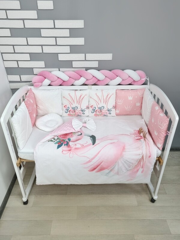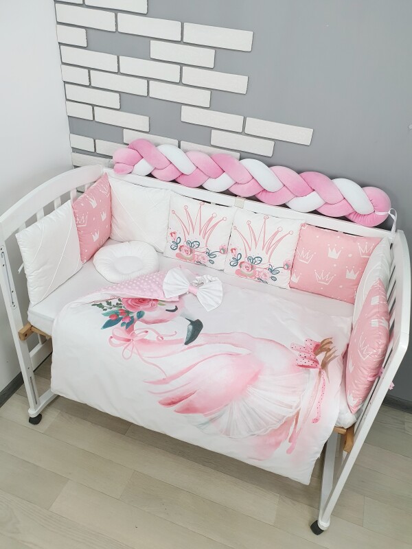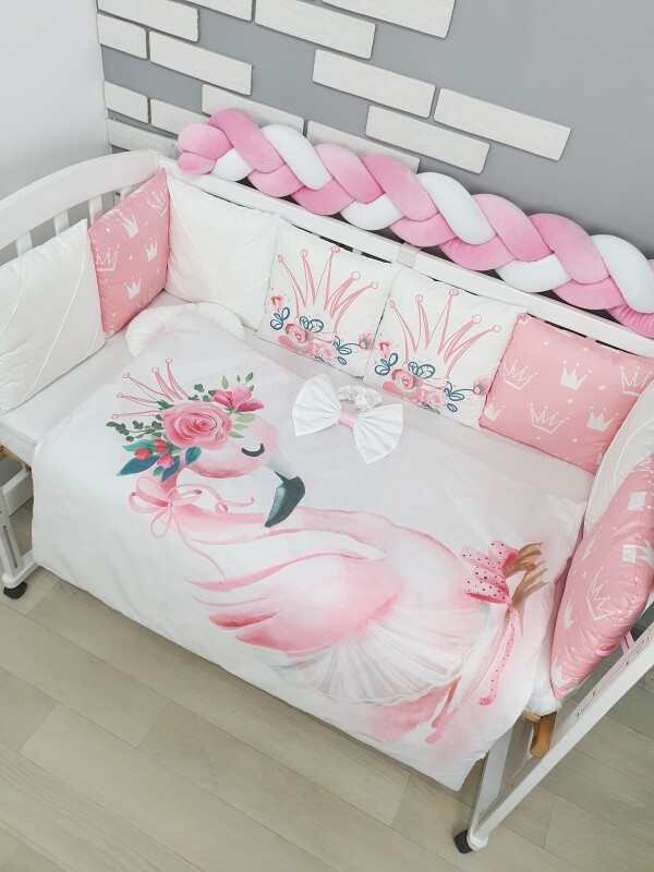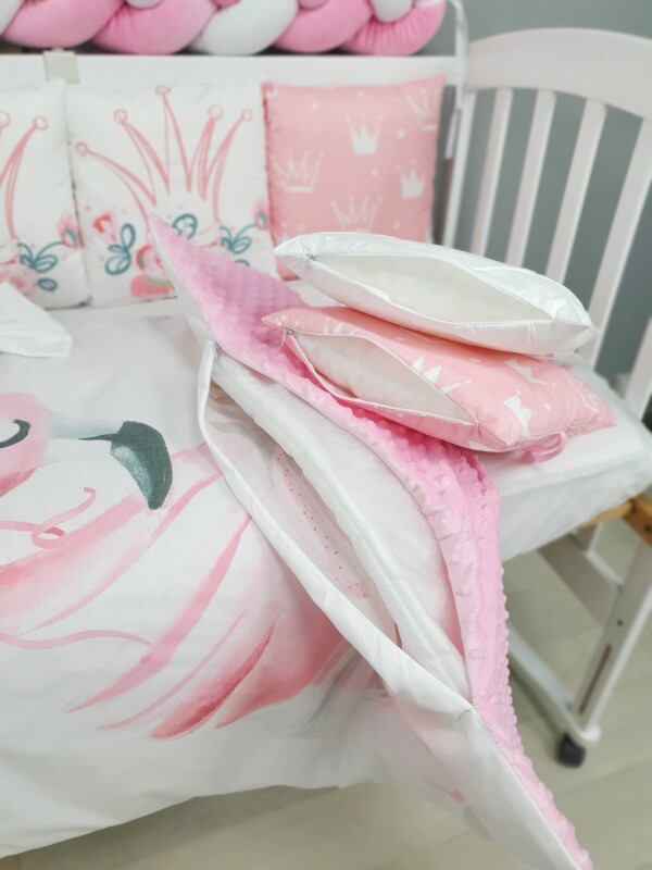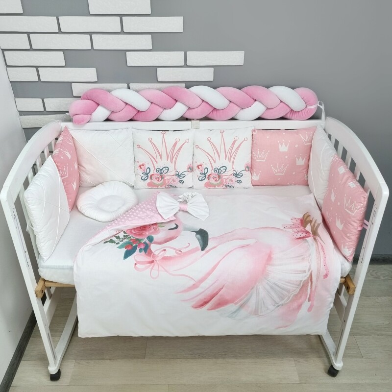 Juno, інтернет-магазин дитячих товарів\\Комплекти постільної білизни, в дитяче ліжечко. Рожевий фламінго з коронами