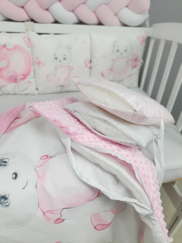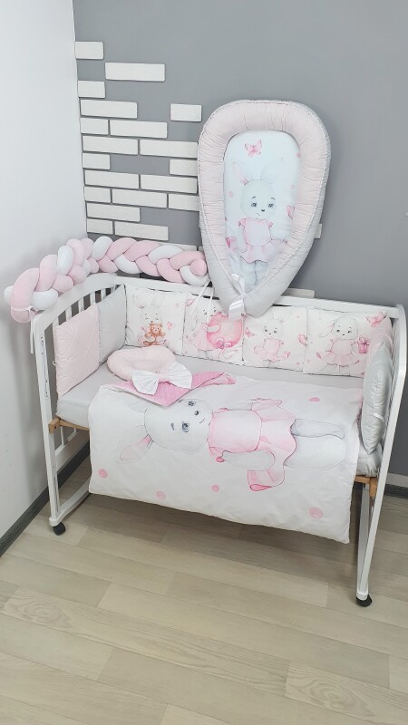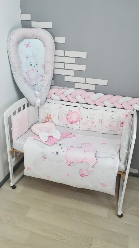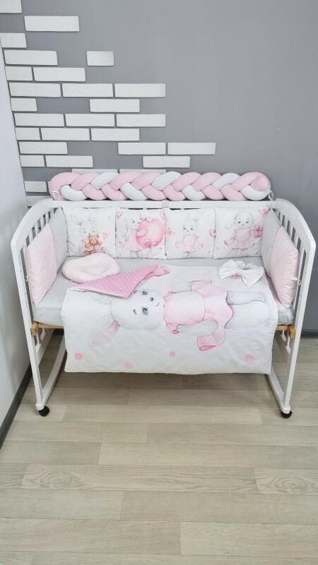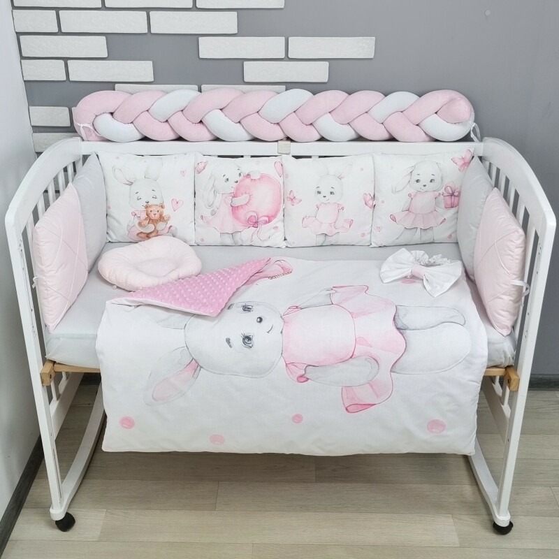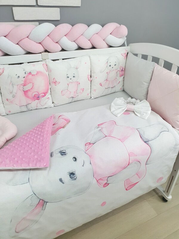 Комплекти постільної білизни, в дитяче ліжечко. Зайка в платті сіро-рожевий