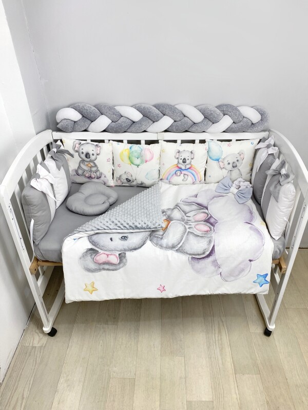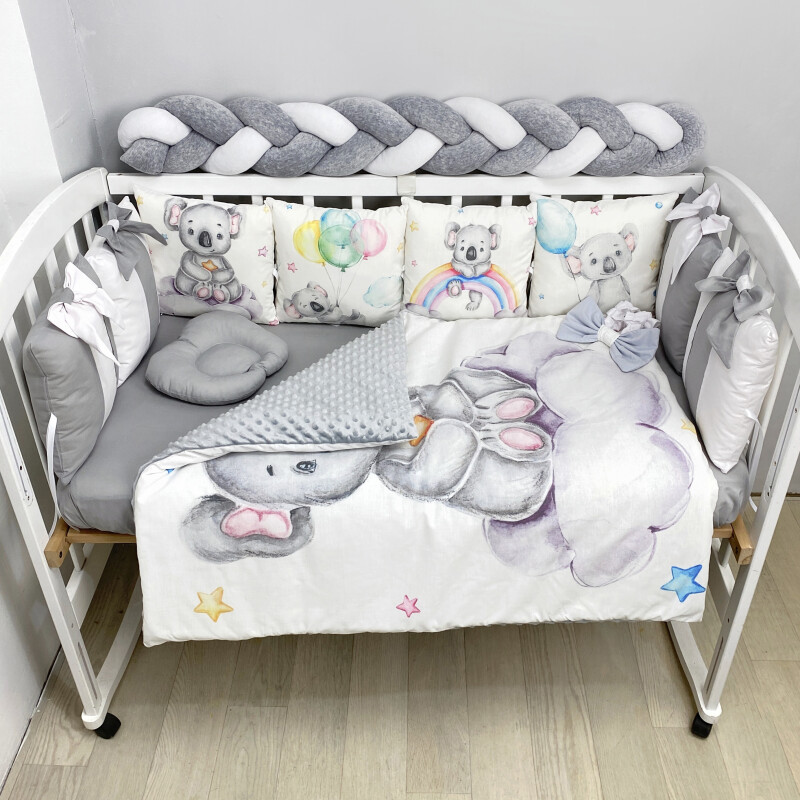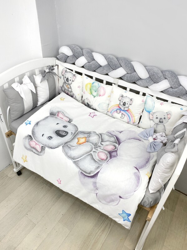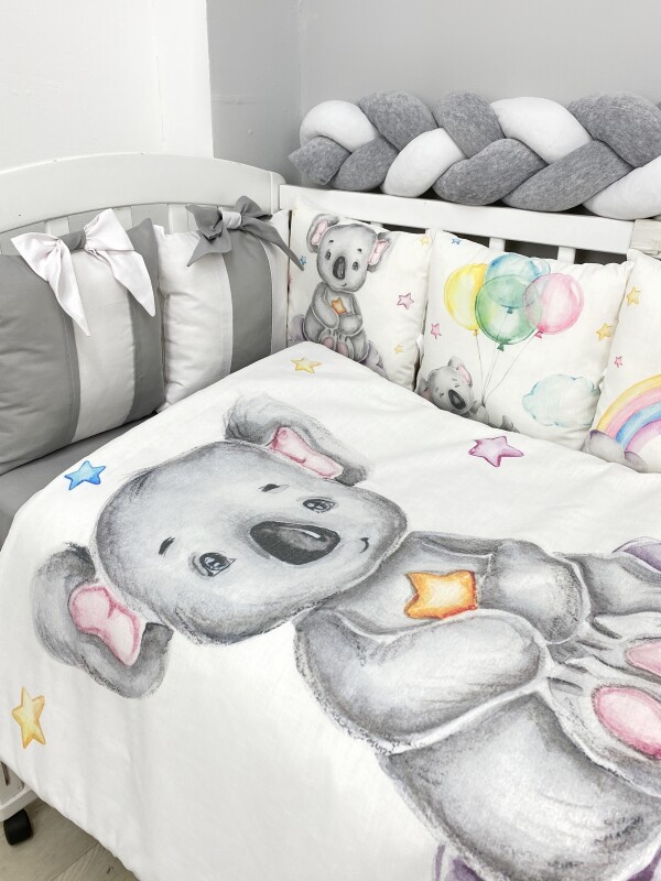 Комплекти постільної білизни, в дитяче ліжечко. Коали сіро-білі з бантиками