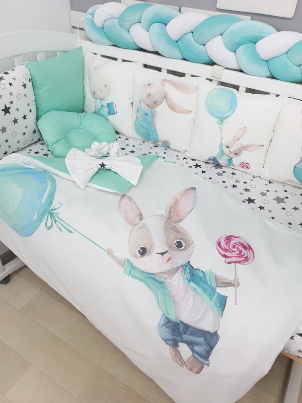 Juno, інтернет-магазин дитячих товарів\\Комплекти постільної білизни, в дитяче ліжечко. Зайка м'ятний на кулі