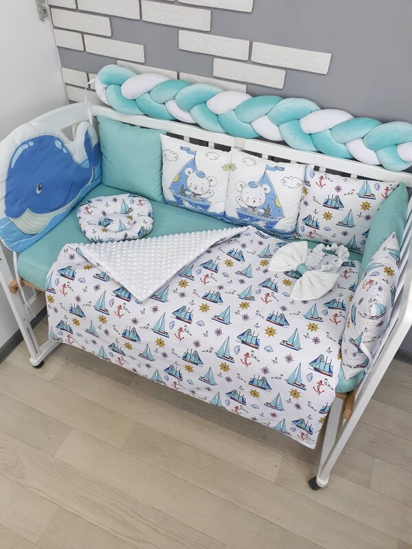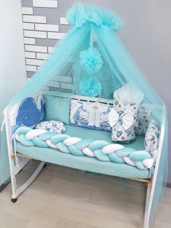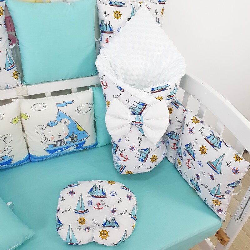 Juno, інтернет-магазин дитячих товарів\\Комплекти постільної білизни, в дитяче ліжечко. Ведмедики на кораблику з китом