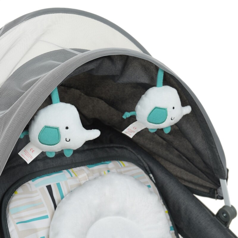 • Регульована спинка: Центр, що закачує, має регульовану спинку за допомогою ременя, для комфорту малюка.