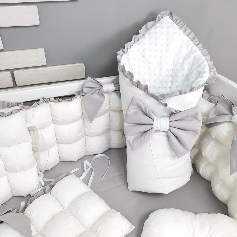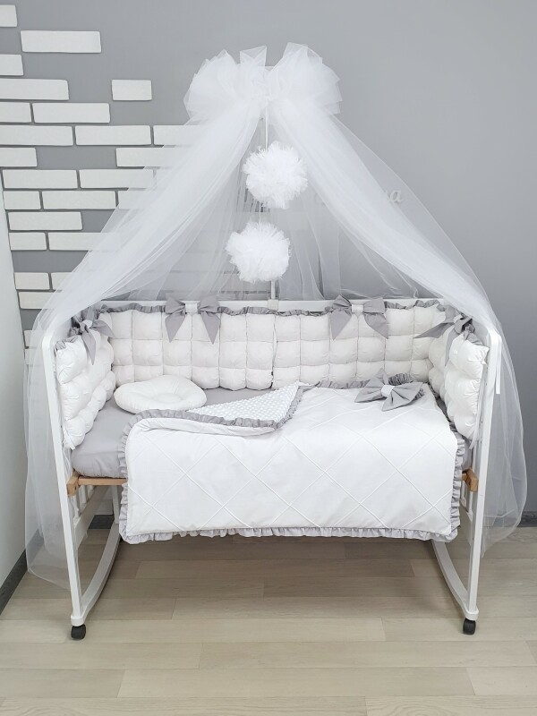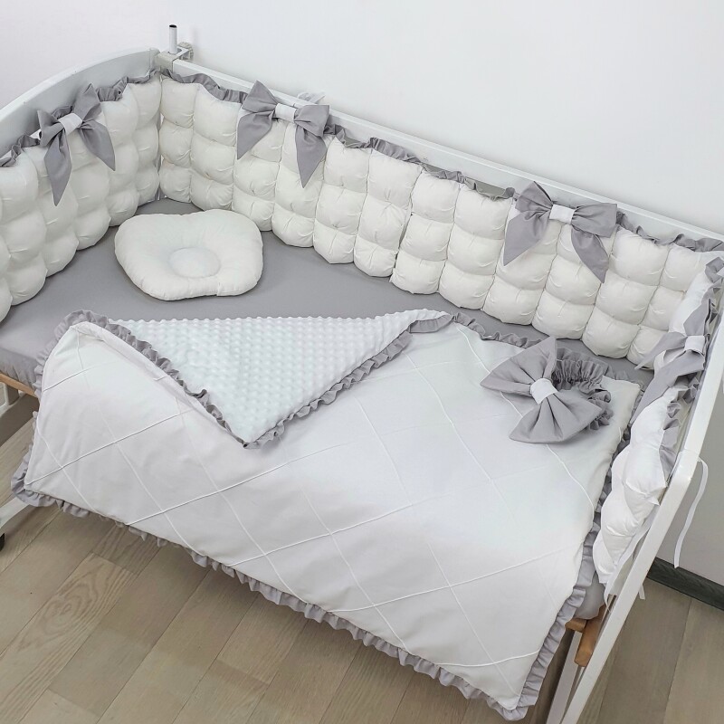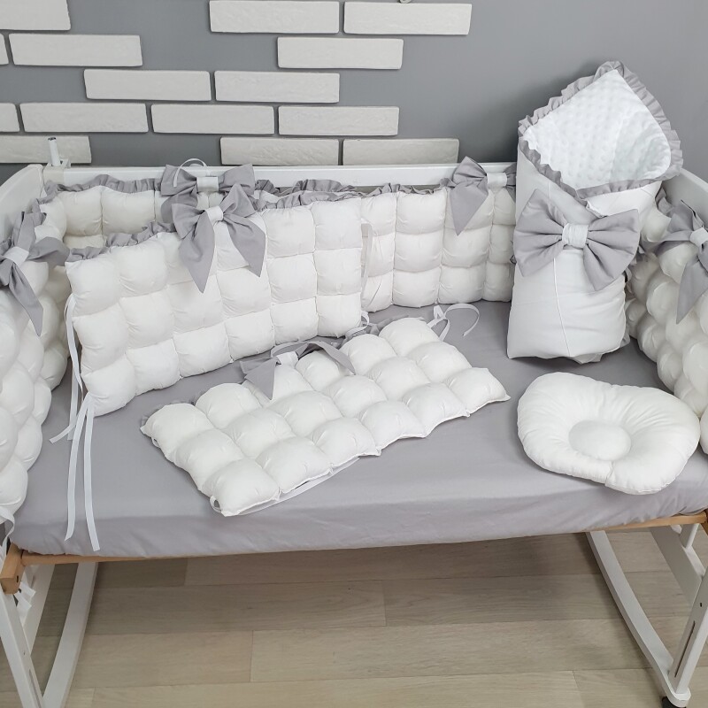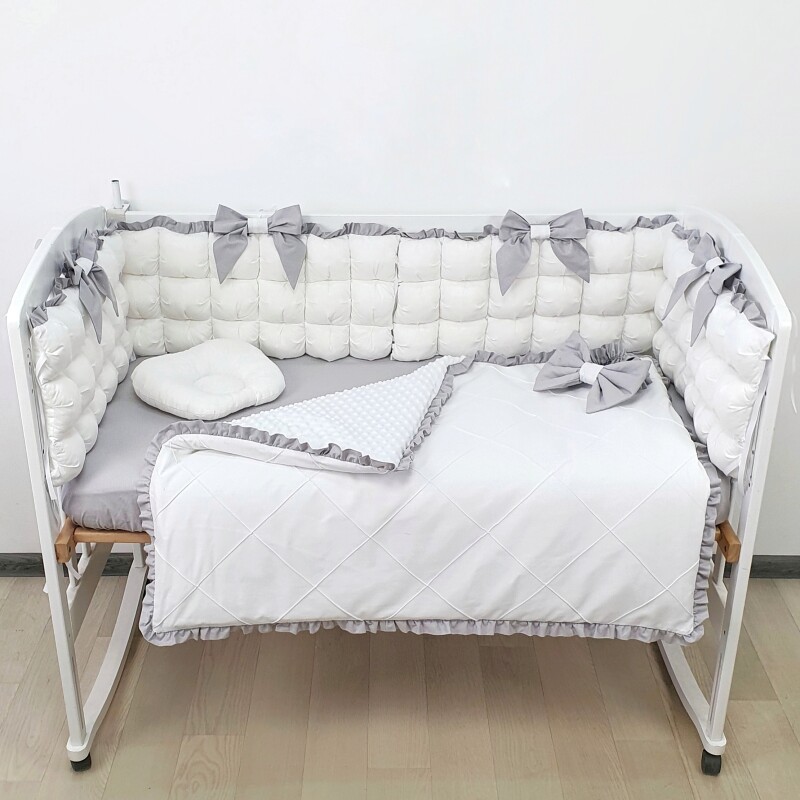 Комплект постільної білизни, в дитяче ліжечко - Біло-сірі бомбони
