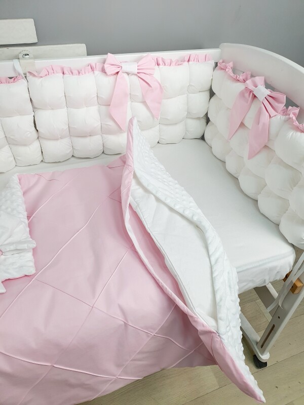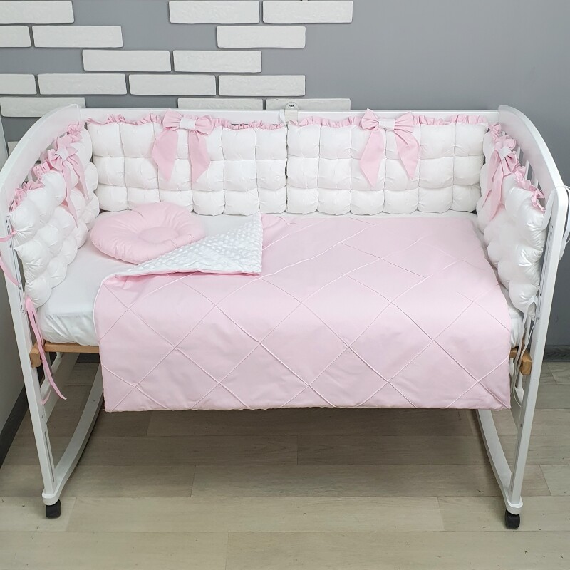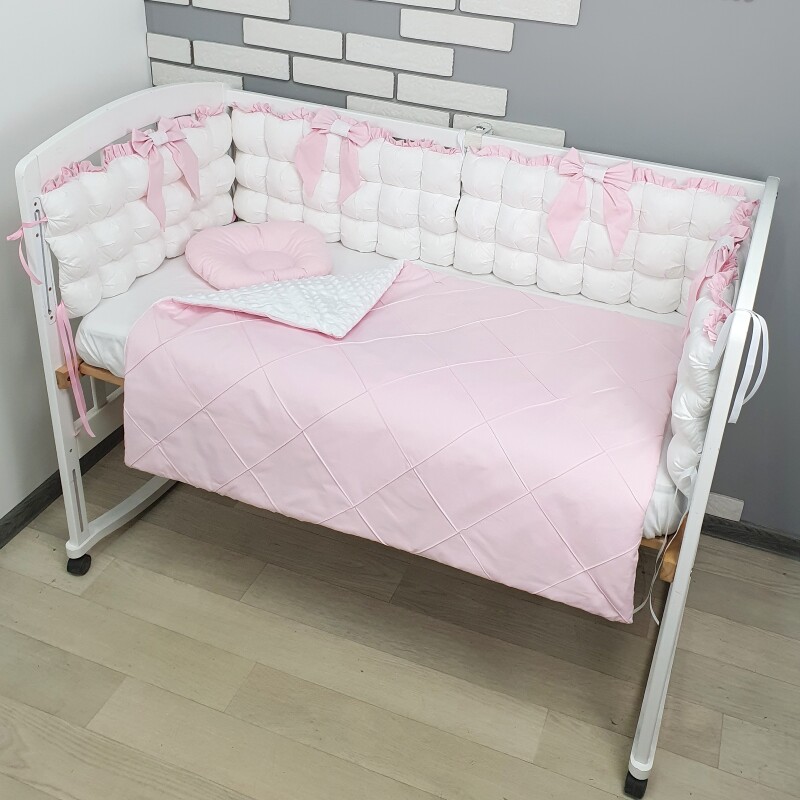 Комплект постільної білизни, в дитяче ліжечко - Біло- рожеві бомбони