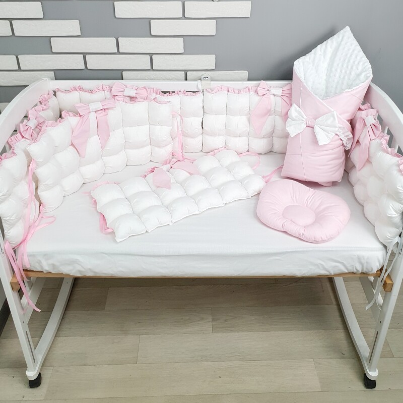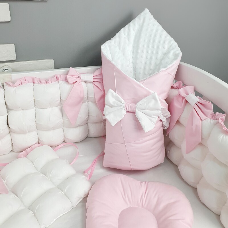 У комплекті набору  з бомбонами ви знайдете все необхідне для комфортного та затишного вигляду дитячого ліжечка. Шість великих подушок-бомбонів розміром 60*30 см кожна або чотири подушки-бомбони разом з косичкою завдовжки 120 см додають естетичний шарм і забезпечують оптимальний комфорт для вашої дитини.