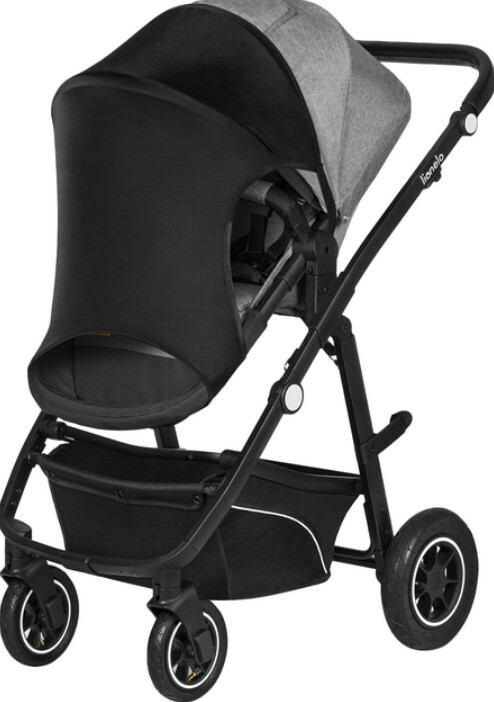 Відкриті сторони суміші забезпечують вільний потік повітря. Завдяки використанню гнучкого матеріалу суміш можна вільно розтягувати, адаптуючи її до розміру рами. Кріплення здійснюється за допомогою універсальних металевих гачків. Можна використовувати як з гондолою, так і з коляскою.