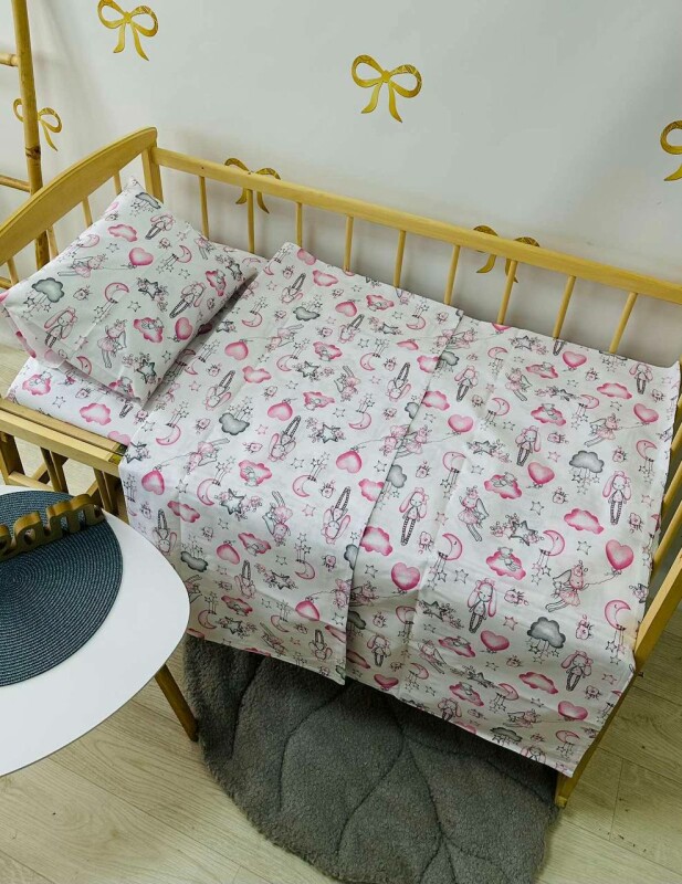 Juno, інтернет-магазин дитячих товарів\\Комплект змінної постільної білизни в ліжечко Зайчик на рожевому