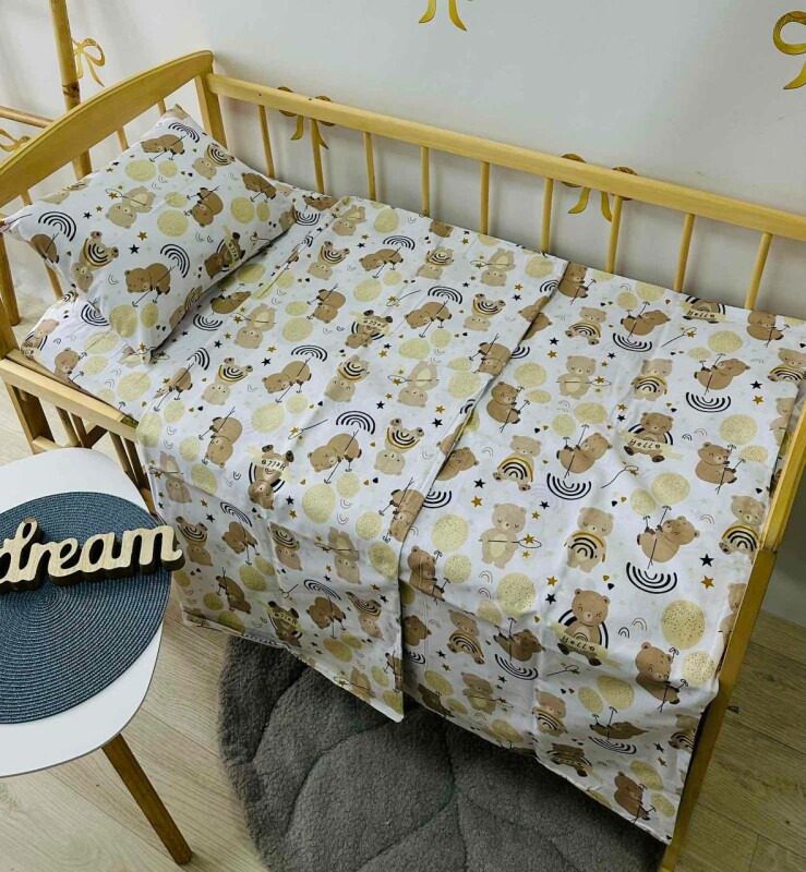 Комплект змінної постільної білизни в ліжечко Ведмедик з веселкою
