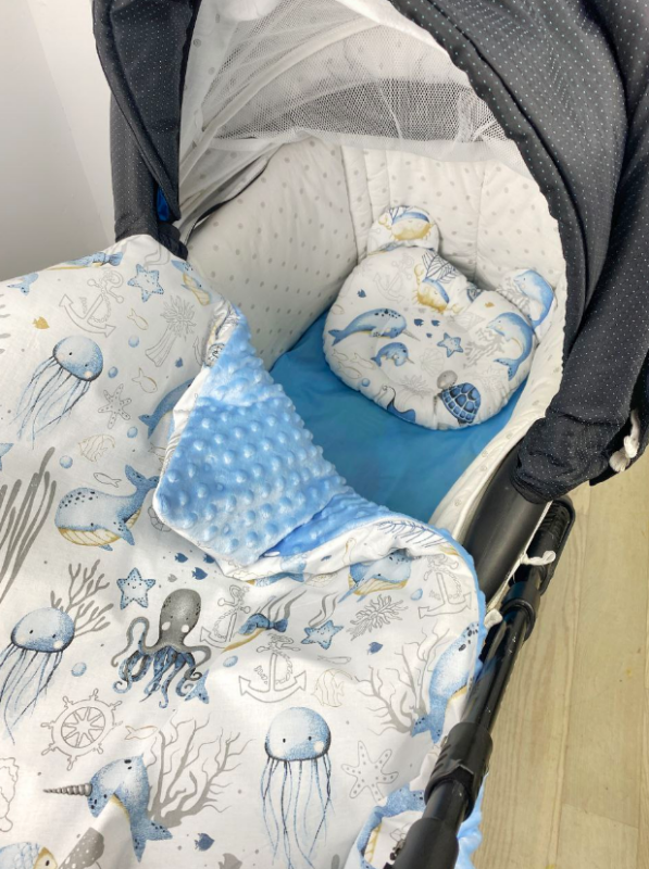 Juno, інтернет-магазин дитячих товарів\\Набір в візок Морський з блакитним плюшем