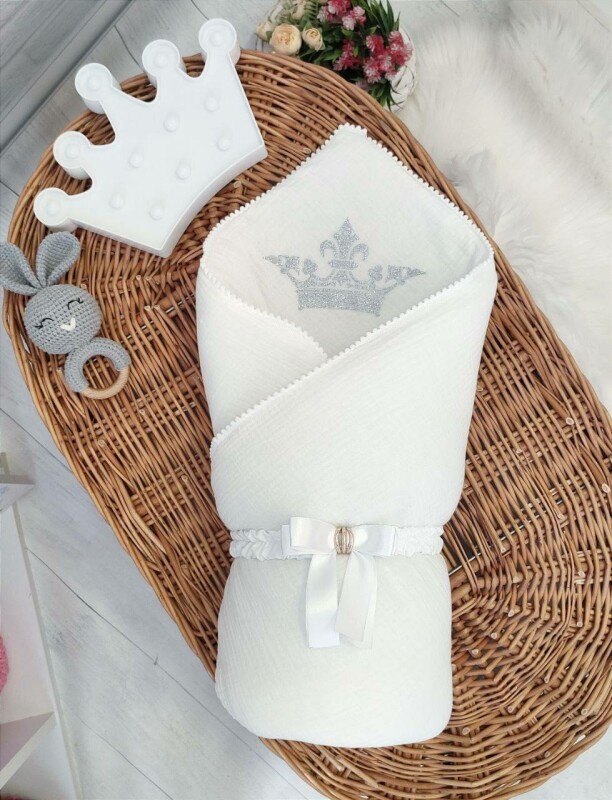 Juno, інтернет-магазин дитячих товарів\\Мусліновий Конверт-одіяло з Короною Білий