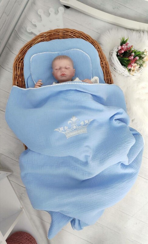 Juno, інтернет-магазин дитячих товарів\\Мусліновий комплект у коляску Корона Блакитний