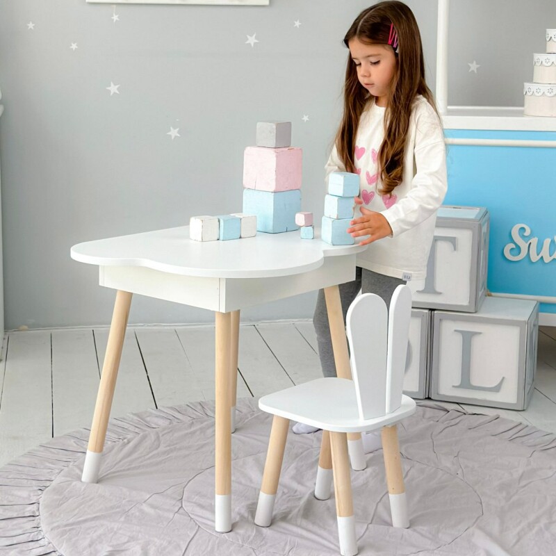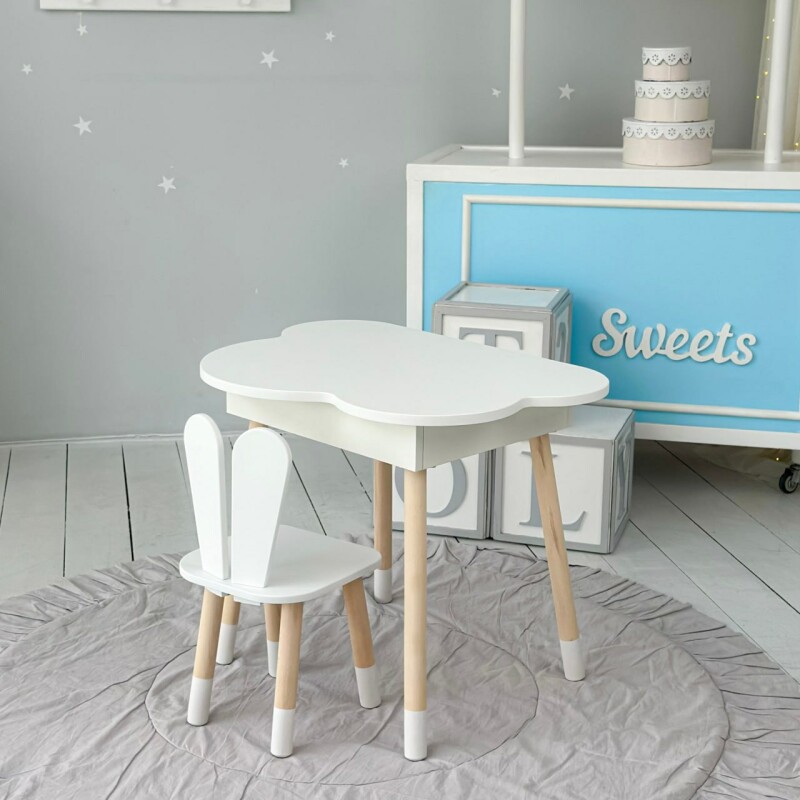 Стіл хмаринка з нішею і стільчик Зайчик Білий