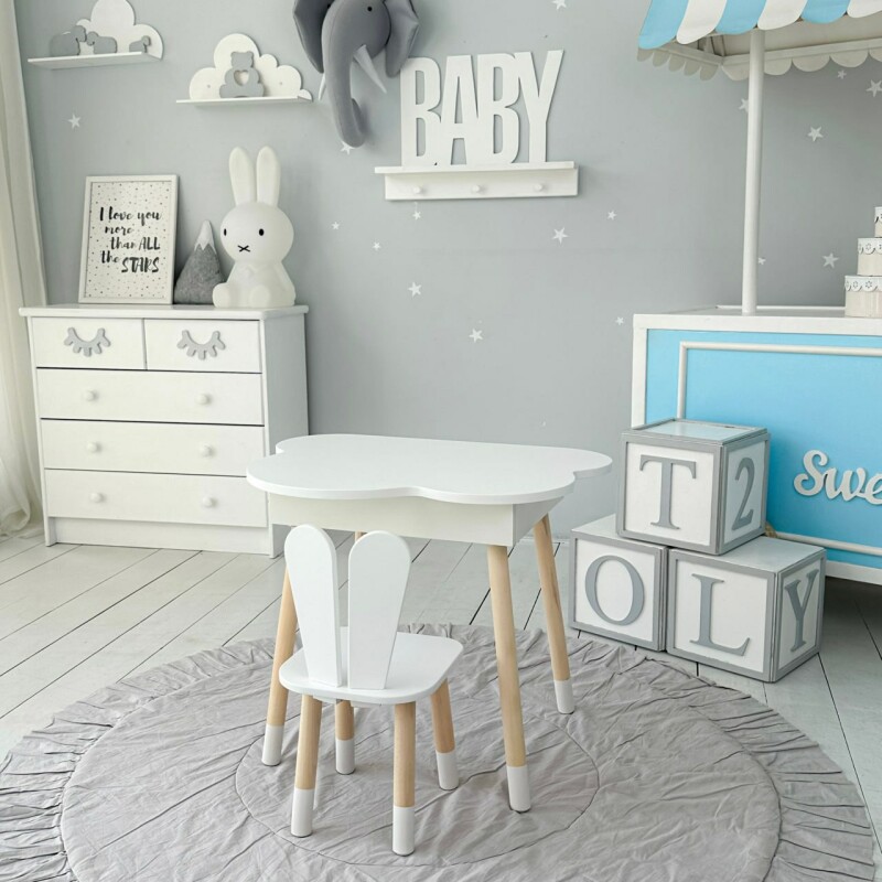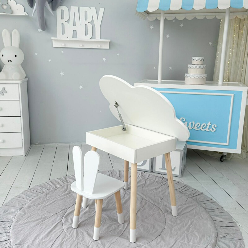 Juno, інтернет-магазин дитячих товарів\\Стіл хмаринка з нішею і стільчик Зайчик Білий