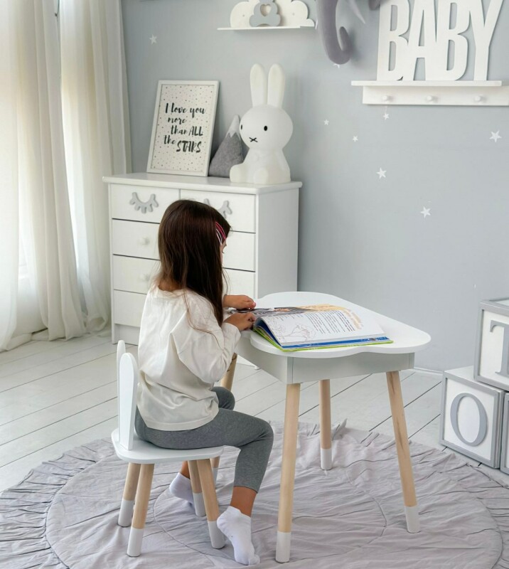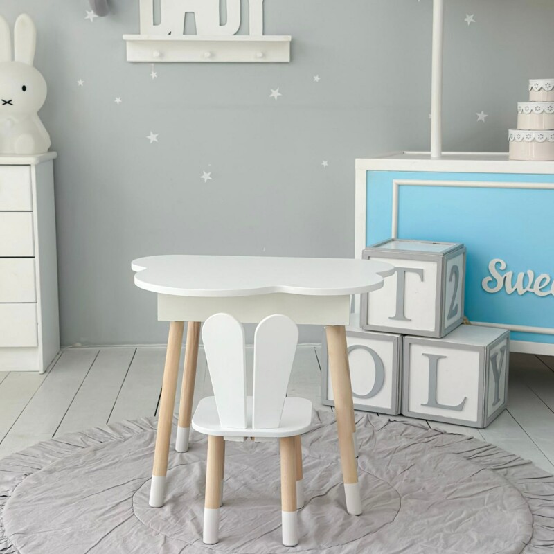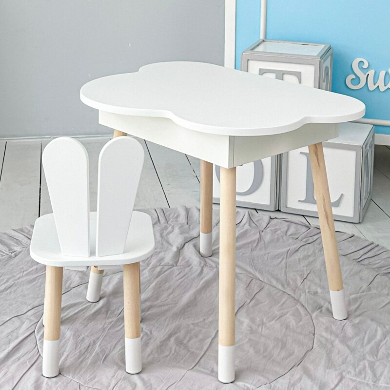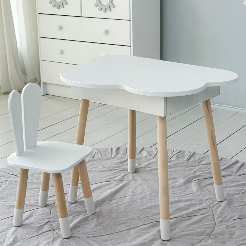 Столик з висувною шухлядою і стільчик зайчик Білий