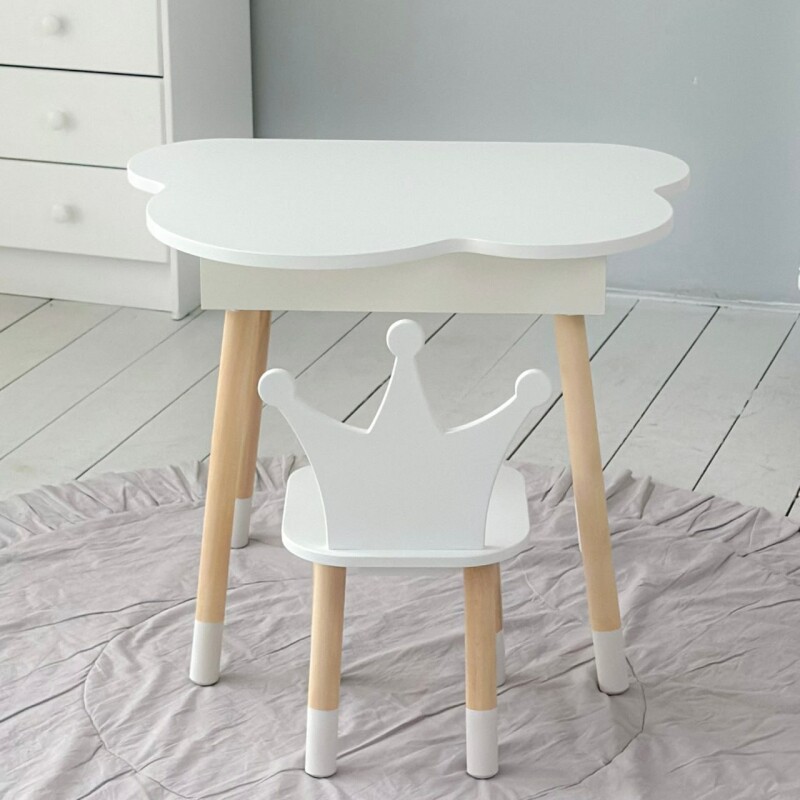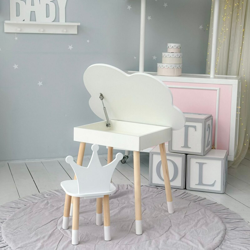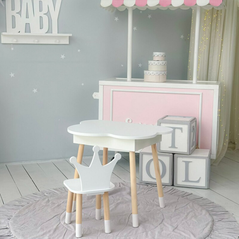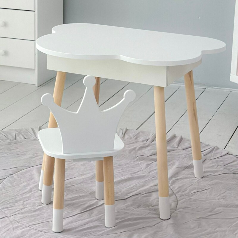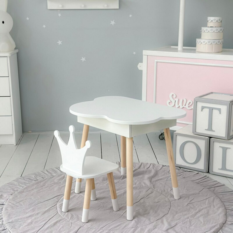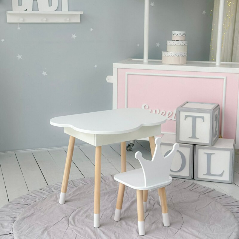 Juno, інтернет-магазин дитячих товарів\\Стіл хмаринка з нішею і стільчик Корона Білий