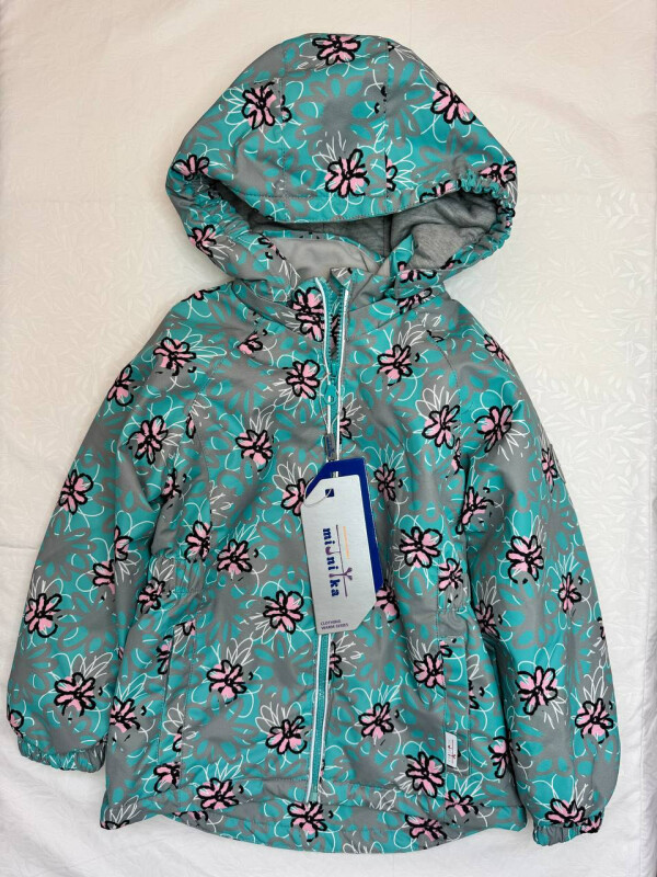Дитяча демісезонна куртка Mirunjika, бірюзово-сіра з квітами