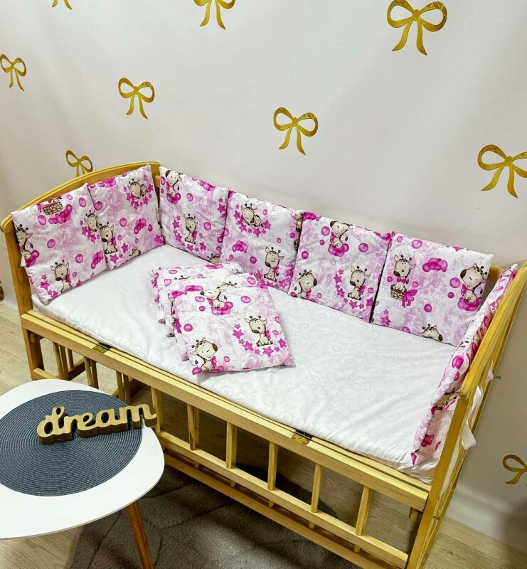 Бортики - захист у дитяче ліжечко Жираф рожевий
