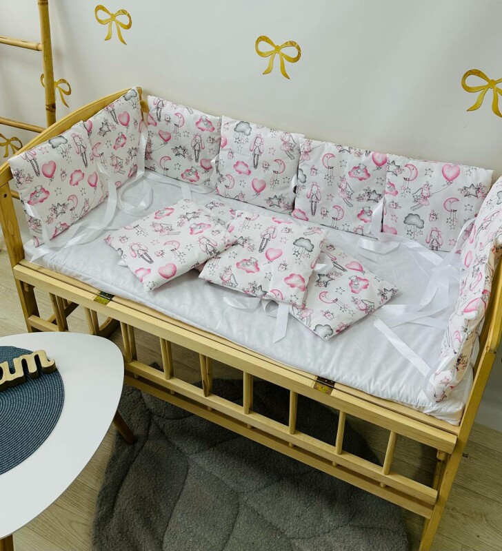 • захисний бампер убезпечить дитину від протягів і допоможе уникнути ударів, захистивши цим малюка від ударів об дерев'яні прути ліжечка;