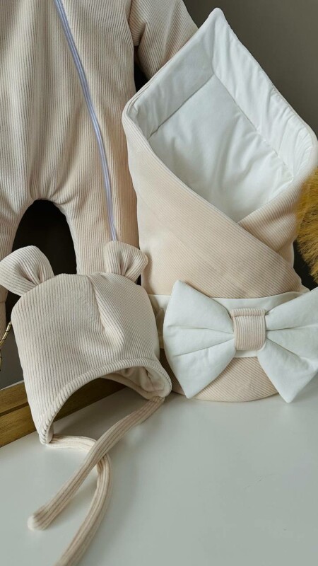 Juno, інтернет-магазин дитячих товарів\\Комплект конверт -ковдра +комбінезон +шапочка Молочний