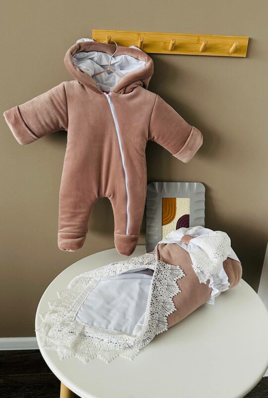 Набір велюровий комбінезон та конверт для новонароджених