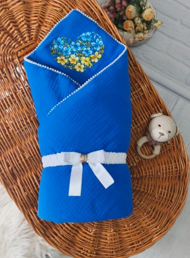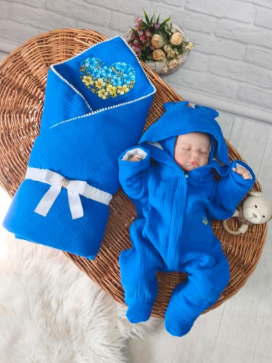 Новинка! Мусліновий комплект преміум класу в патріотичному стилі!!! Конверт-одіялко в одному стилі  з чоловічком !!!