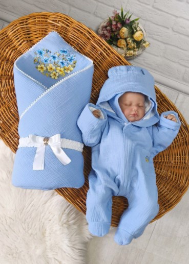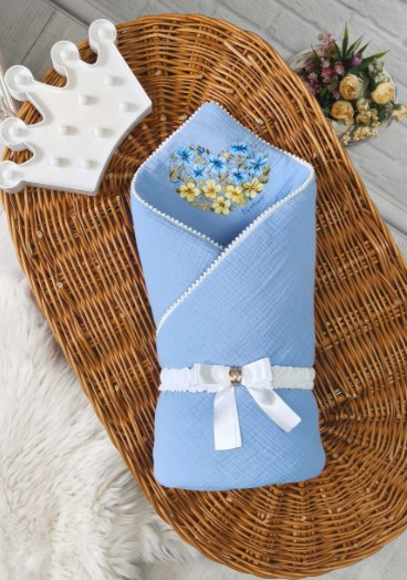 Мусліновий комплект преміум класу в патріотичному стилі ElLize Блакитний