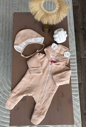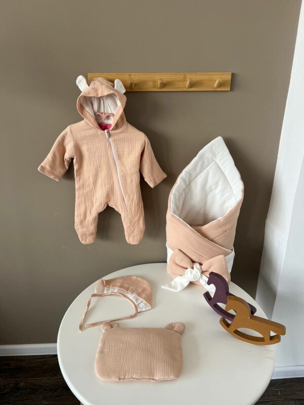 Juno, інтернет-магазин дитячих товарів\\Янголятко муслін набір универсальний комбінезон 0-3 місяці, конверт - плед, шапочка Бежевий