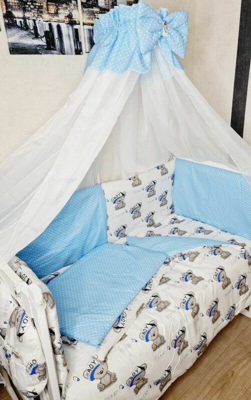 Набір постільний в дитяче ліжечко з захисними бортиками подушки, балдахін, кишеня Ведвежа "It's a boy"