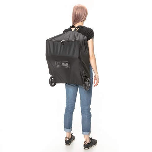 Спеціальний ремінець дозволяє переносити коляски так само, як валіза на колесах. Достатньо одягнути чохол на коляску, щоб два її колеса увійшли в спеціальні отвори, і у вас вийде валіза на колесах. Такий вид транспортування значно спрощує подорож.