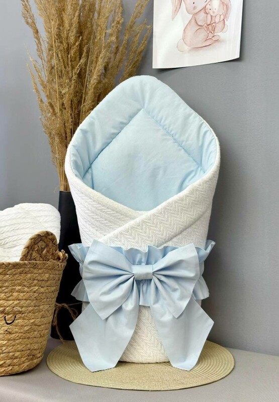 Juno, інтернет-магазин дитячих товарів\\Конверт-ковдра в'язане Світло-блакитний-білий