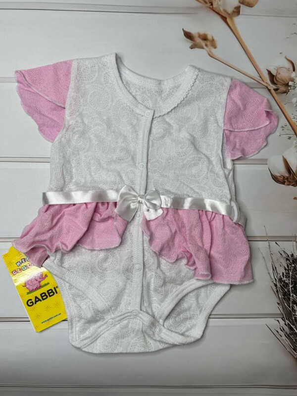 Нарядний боді-сукня «Ніжна перлинка» з мереживом та бантом Біло-рожеве