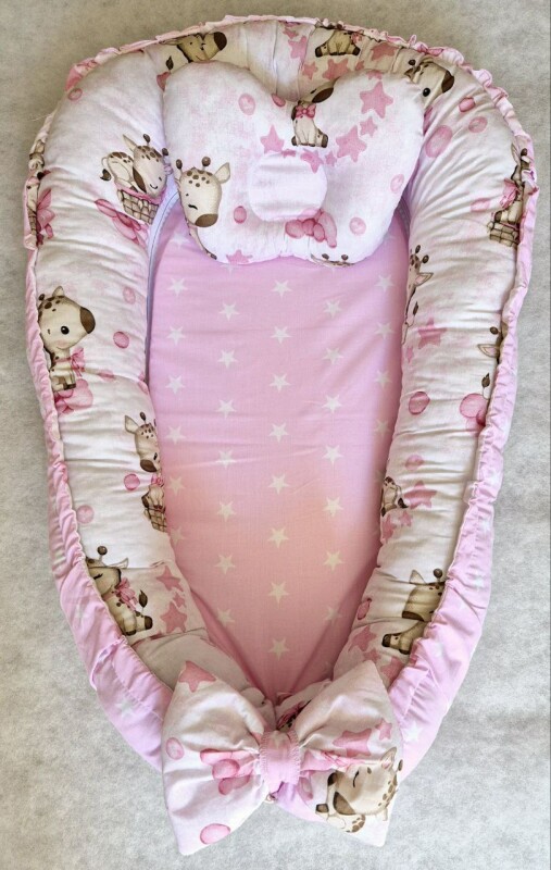 Juno, інтернет-магазин дитячих товарів\\Кокон у дитяче ліжечко з переноскою Bonna Жирафа Рожева